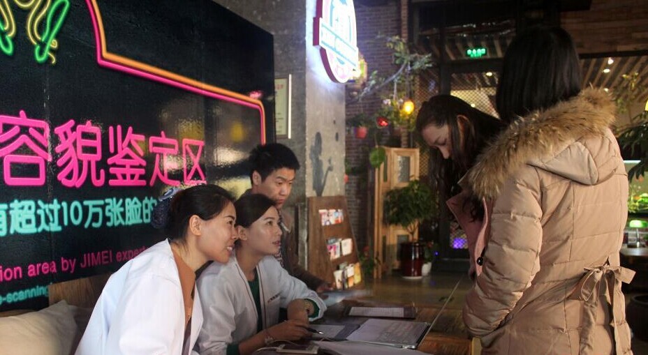 近日,郑州一餐厅因高调打出“靠脸吃饭”招牌,整形专家现场对就餐顾客容貌打分,颜值高的顾客可免费就餐活动而走火。然而,1月13日下午,该餐厅约30平方米的“靠脸吃饭”广告牌被市城管局责令自行拆除。郑州市城市管理局下发的责令改正通知书中显示,该餐厅未经批准,擅自设置户外广告行为,违反《郑州市户外广告设置管理条例》第12条规定,有碍市容容貌。不过,餐厅薛经理表示,“脸庞”虽被摘除,但“刷脸”活动将依旧进行。图为餐厅“靠脸吃饭”虽被拆除,但仍有市民慕名前来测颜值。