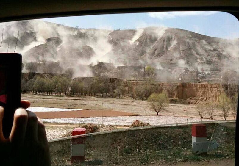 甘肃省定西市临洮县发生4.5级地震,深度9千米,周边约百公里左右的临夏、兰州等震感强烈。图为网友手机拍摄到的地震时山体土方滑落的一幕。