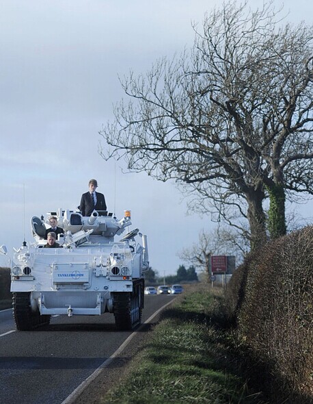 军事迷Nick Mead共拥有总计价值两百万英镑、130余辆可以合法上路的坦克,这意味着他的两个儿子每天可以自己选择一辆坦克,让父亲送他们上学。他们的座驾就算在恶劣的大雪天也丝毫不受影响。